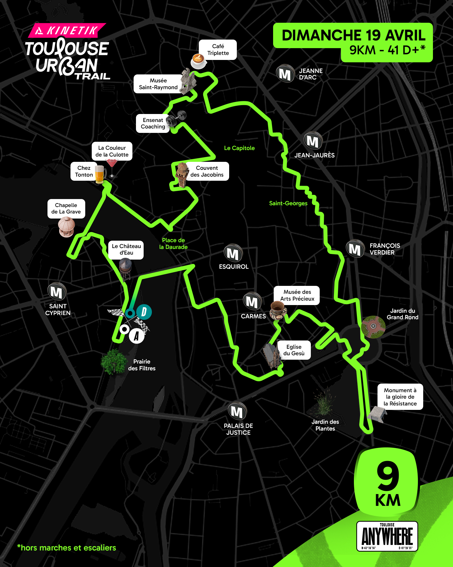 Afin de préserver la beauté des parcs, jardins et rues de Toulouse, nous comptons sur votre engagement écologique : ne laissez aucun déchet sur le parcours, suivez le balisage et ne coupez pas au travers des pelouses.